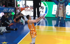 张文杰选择篮下冲出来,大风车转体暴扣,第一次失败,第二次成功,获得46分。